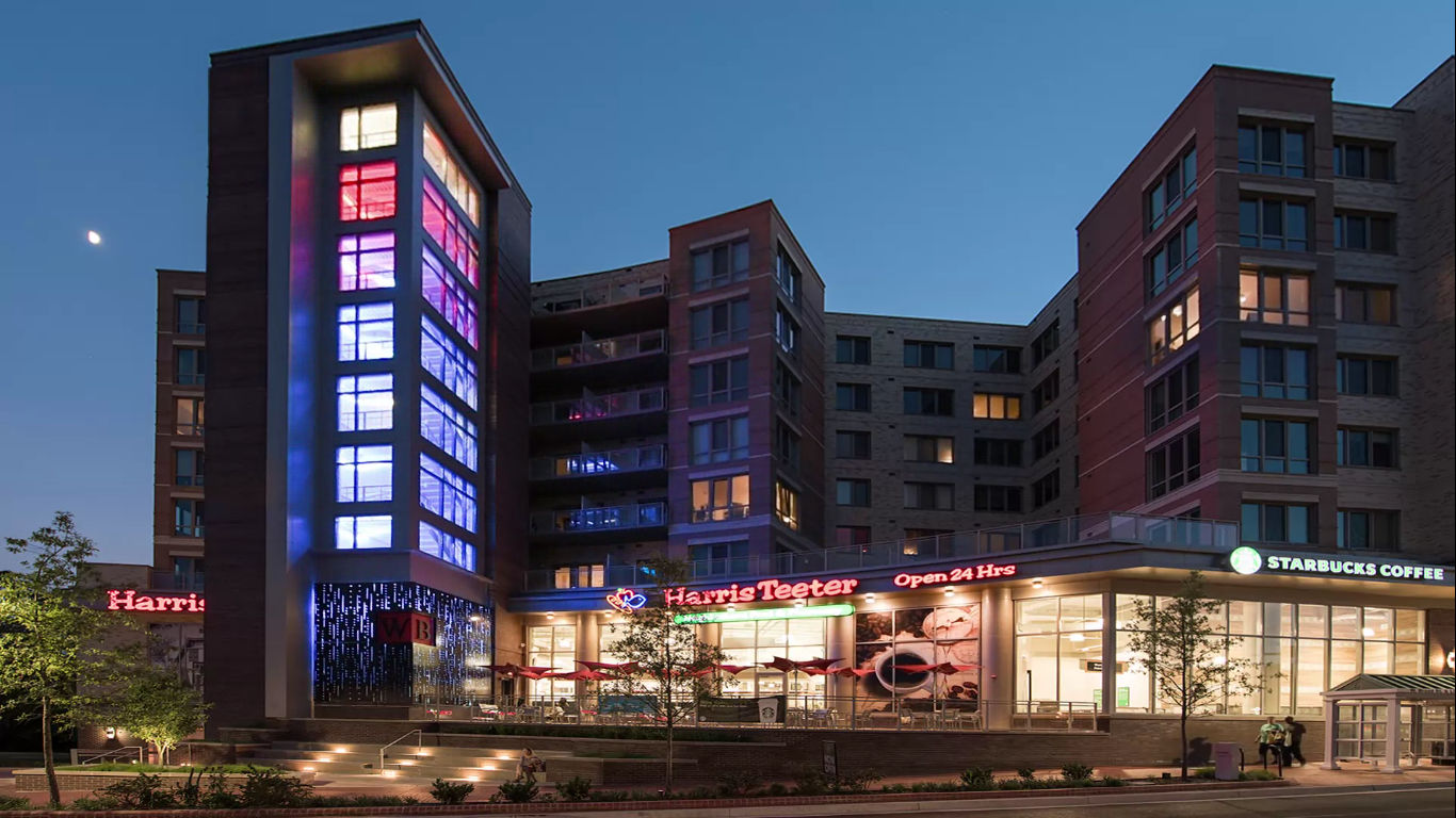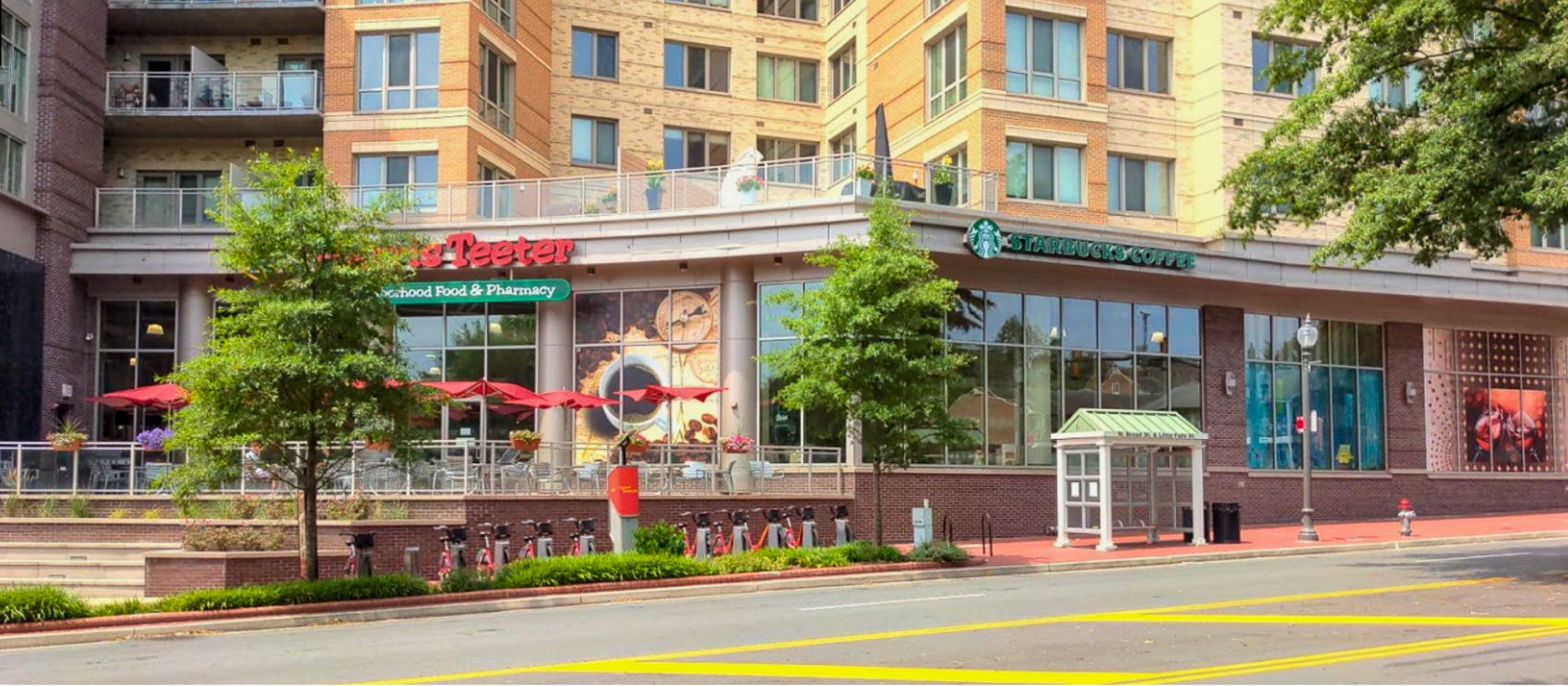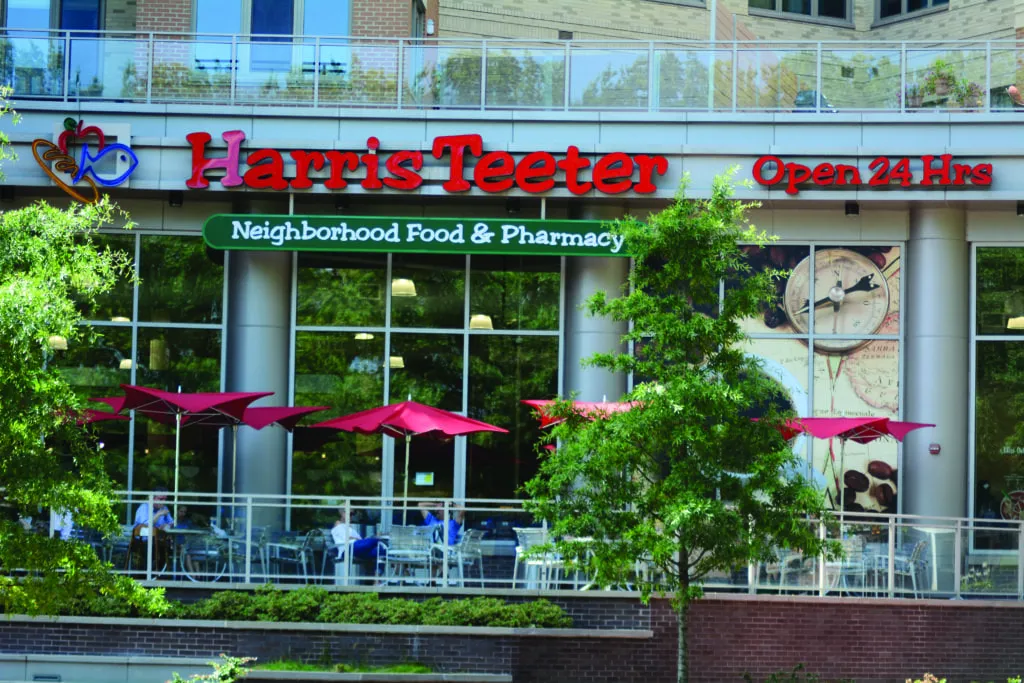 The Harris Teeter store in downtown Falls Church is a full-service grocery store with a deli and bakery department, pharmacy, and a beer and wine tasting area.