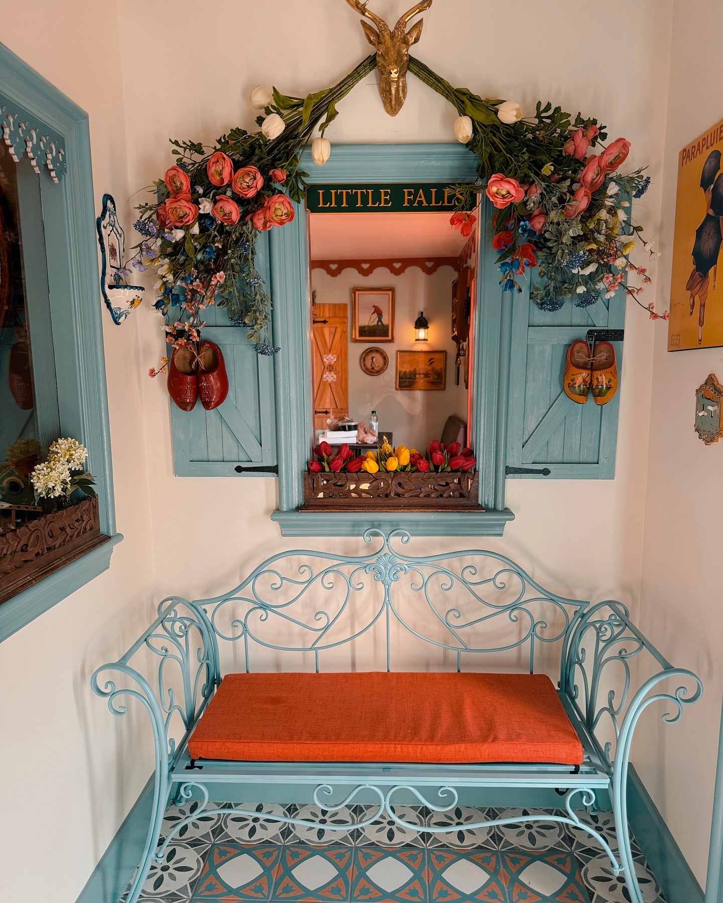 The café’s romantic vintage design sets the tone for a memorable visit, featuring antique décor sourced from Europe and the U.S., a cozy coral-and-blue cottage exterior, and a serene outdoor patio perfect for lingering over coffee or wine. Convenient free street parking is available along Little Falls Street and nearby side streets, making it easy to stop in for breakfast, brunch, or a leisurely afternoon.