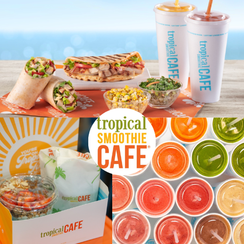 Tropical Smoothie Cafe was born on a beach, and we learned a better way to live on that beach. We make eating better easy breezy with fresh, made-to-order smoothies, wraps, flatbreads, and bowls that instantly boost your mood. Experience the good vibes of the tropics, whether you’re ordering ahead in our app or online for delivery, curbside*, or pickup. It’s like a tiny vacay in the middle of your day. You’re on Tropic Time Now!