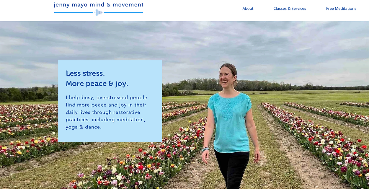 Jenny Mayo Mind & Movement Practices & Perspectives for Stress Reduction, Peace & Joy Production Meditation, Restorative Yoga, Reiki, Joyful Dance & more!