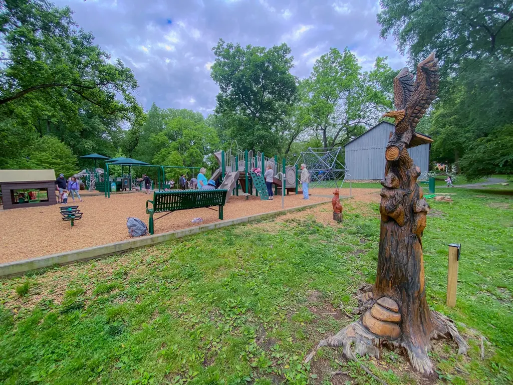 Cherry Hill Park is a charming and picturesque park located at 312 Park Avenue in Falls Church, Virginia. The park hosts various seasonal events and festivals throughout the year and is a popular tourist attraction. The park includes hand-carved wooden art sculptures, lovely large shade and specimen trees, picnic tables, benches, and a room to relax or play. The playground at Cherry Hill Park is a paradise for kids of all ages. With a variety of well-maintained play structures, including swings, slides, and climbing walls, there’s something for everyone to enjoy. Conveniently located and easily accessible, the park is a stress-free and comfortable choice for a family fun day, close to the City’s dining and shopping areas and other attractions.